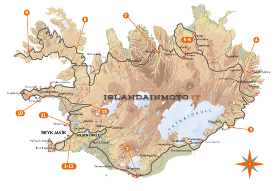 Studiato dal mitico Alex, geologo, con 31 anni di esperienza in Islanda e motociclista da sempre, Iceland Complete, è un tour individuale SelfRide con moto a noleggio adatto a tutti, con un itinerario progettato per andare alla scoperta delle principali attrattive naturalistiche dell'isola. I tratti in terra battuta sono percorribili da qualsiasi tipo di moto e le tappe giornaliere sono state studiate per avere il tempo necessario per fare foto, escursioni e godersi i panorami in tutta calma e relax. Geysers, cascate, ghiacciai, fiordi, deserti, vulcani, laghi, parchi nazionali, riserve naturali e ancora balene, foche, cavalli, renne, uccelli. Un'isola creata dai vulcani e plasmata dai ghiacciai dove i paesaggi sono estremamente eterogenei e dove la corrente del golfo rende il clima molto più mite di quanto si pensi. Scoprirete una terra dimenticata dal tempo dove natura e uomo vivono in armonia da mille anni. Proverete emozioni indescrivibili che rimarranno dentro di voi per sempre!